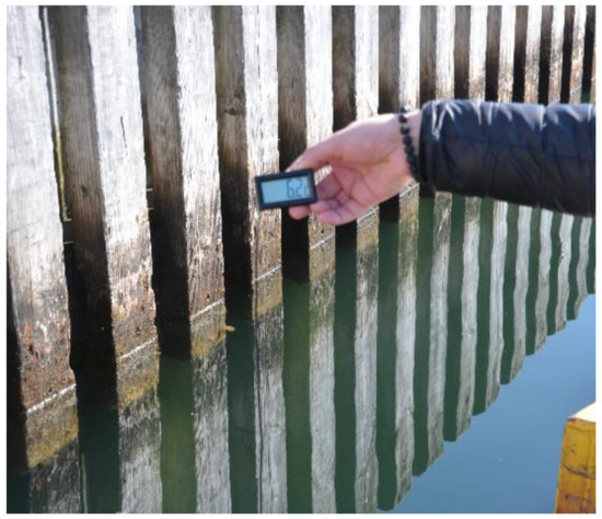 Measurements of the sound velocity in water were executed in two water areas: on the Rivers Motława and Martwa Wisła in Gdańsk (A in Figure 1) and in Gdynia Marina (B in Figure 1). The measurements in Gdańsk were executed at the depths of 5 m and 10 m. The first water area serves to station large cruise ships and represents heavy sea traffic in the tourist season. The other one is located in the area of a publicly available slipway, which allowed for the analysis of the accuracy of the depth measurements to be performed in a large range of depths. The measurement station monitoring water parameters is located in the Northern Port in Gdańsk, far from the place the sound velocity measurements were executed. Moreover, it is located on the Gdańsk Bay side.