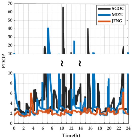 41. Teng, Y.; Wang, J. Some Remarks on PDOP and TDOP for Multi-GNSS Constellations. J. Navig. 2015, 69, 145–155. [Google Scholar] [CrossRef] [Green Version]
