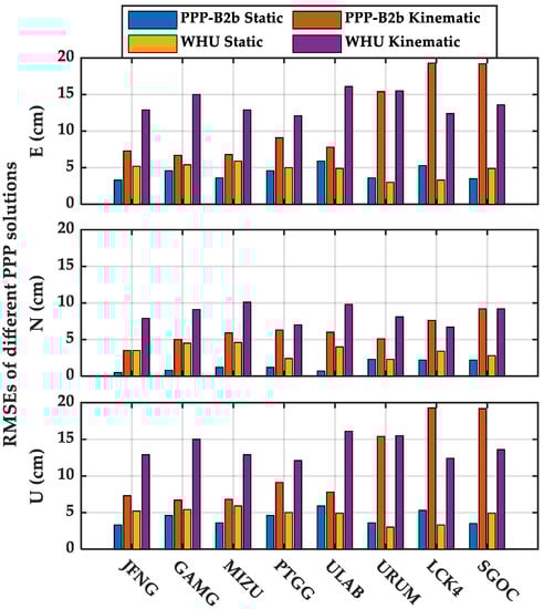 Table 7. RMSE (cm) for each station (B2b PPP vs. WHU PPP).