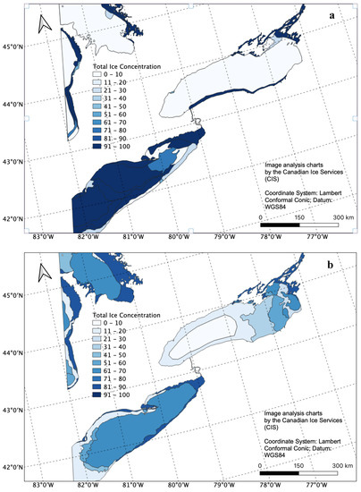 - Great Lakes Environmental Research Laboratory—Historical Ice Cover. Available online: https://www.glerl.noaa.gov/data/ice/#historical (accessed on 30 September 2020).
