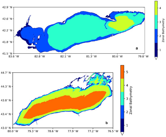 Zonal Bathymetry of Lake Erie (a) and Ontario (b) adapted from [39].