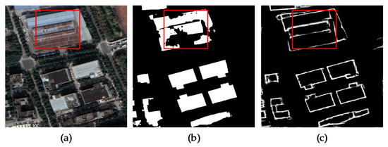Concerning the edge-based models, building extraction is formulated as an edge detection problem. The ground truth used in this kind of model is the building boundaries (Figure 1b). In the literature relating to building boundaries, methods generally fall into the following categories: active contour based [41], polygon based [42], and edge-detection based [43]. Active contour models, or snakes [44] were proposed to find salient image contours and track contours during motion. Zhang et al. [45] proposed deep structured active contours, in which the energy function is learned by DCNNs. Compared with the active contour-based method, polygon-based methods are relatively new. Li, Wegner and Lucchi [42] proposed a novel approach called PolyMapper, which was able to directly output the vector format of buildings, given the overhead images as input. Based on PolyMapper, Zhao et al. [46] proposed an end-to-end network, the main idea of which is predicting the key points of building boundaries and connecting them to form a closed polygon directly. Concerning the methods based on edge detection, DCNN-based methods from computer vision, such as holistically nested edge detection (HED) [47], richer convolutional features (RCF) [48], D-LinkNet [49], and dense extreme inception network for edge detection (DexiNed) [50] have been introduced to extract the building boundaries. Postprocessing is usually needed in the edge-detection-based approaches. For example, Lu, Ming, Lin, Hong, Bai and Fang [43] used the richer convolutional features network to extract building edges. Additionally, they refined the edge probability map with a geomorphological concept in the postprocessing step. Nevertheless, broken lines are likely to be shown in the output of deep edge-detection networks, which would result in the omission of rooftops.