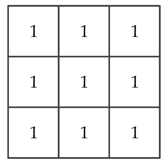 After that, morphological operation and small area removal are used to further refine the new combined building regions. The kernel used in the morphological operation is defined in Figure 9. We choose the erosion operation to remove the redundant one-pixel-wide building edges. An example of redundant edges is displayed inside the yellow boxes of Figure 7. In the small area removal step, regions that are smaller than the threshold are removed, because we consider that the area of a building should reach a specified size.