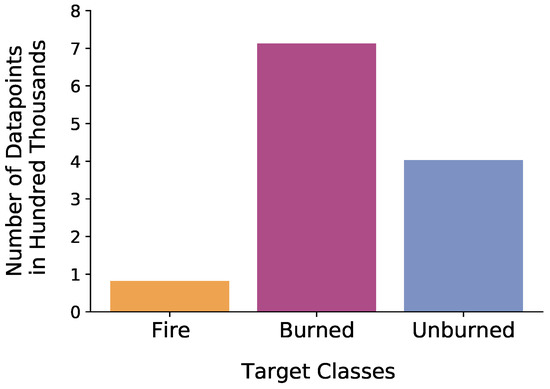 In contrast to the studies that achieved a combined fire and burned area detection [15,60], we applied a more sophisticated supervised approach to simultaneously detect active fires and burned areas. This can achieve higher accuracy than could be possible from only an index calculation or thresholding.