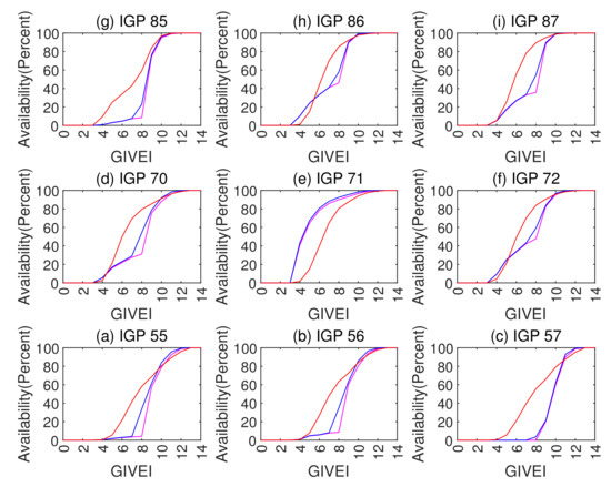 GIVE values below 2.7 m and 6.0 m in percentages are listed in the following Table 4. The ANN method has at least 25 percentage points more on most IGPs for 2.7 m GIVE availability.