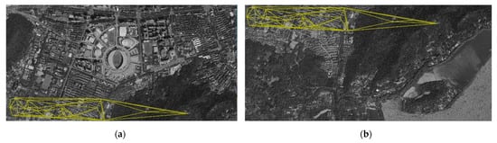The method based on resampling finds the model that makes the maximum number of matches meet the error threshold. In the area of mismatching removal, the most popular method is using RANSAC to calculate the basic matrix, or the homography matrix [,], and estimating the optimal matrix of the two images; the outliers of the matrix model are considered the mismatches. However, on account of the uncertain iteration number of RANSAC, the efficiency will be reduced when there are a large number of mismatches. Therefore, more and more methods to improve RANSAC are being proposed, which include the optimization of the sampling, the optimization of the loss function, and the optimization of the model estimation.