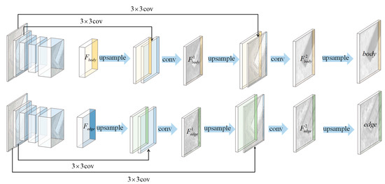 - Li, X.; Li, X.; Zhang, L.; Cheng, G.; Shi, J.; Lin, Z.; Tan, S.; Tong, Y. Improving semantic segmentation via decoupled body and edge supervision. In Proceedings of the Computer Vision–ECCV 2020: 16th European Conference, Glasgow, UK, 23–28 August 2020; Springer International Publishing: Cham, Switzerland, 2020; pp. 435–452. [Google Scholar]