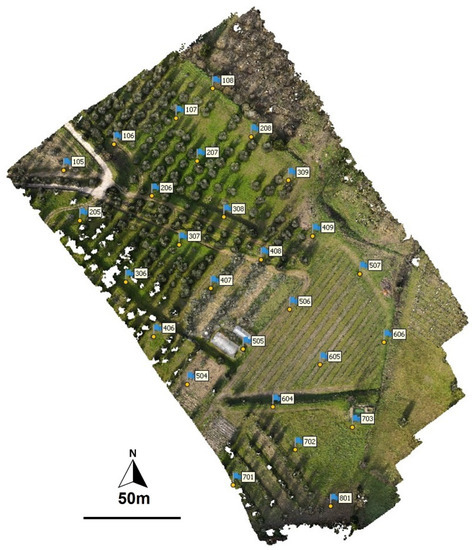 - Sanz-Ablanedo, E.; Chandler, J.H.; Rodríguez-Pérez, J.R.; Ordóñez, C. Accuracy of unmanned aerial vehicle (UAV) and SfM photogrammetry survey as a function of the number and location of ground control points used. Remote Sens. 2018, 10, 1606. [Google Scholar] [CrossRef] [Green Version]