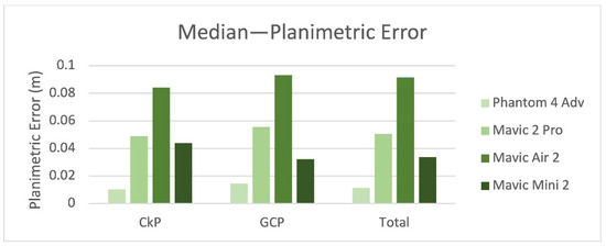 Median calculated for the planimetric error.