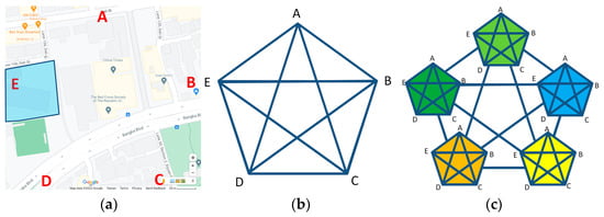 (a) Individual warehouses (A–E) modeled by the first reconstruction; (b) warehouse inter-comparisons performed by the second reconstruction; (c) cross-warehouse cluster inter-comparisons performed by the third or further reconstruction.