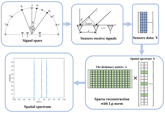 Considering problems, such as distinguishing coherence sources and separating spatial closely sources, sparse reconstruction theory plays an important role in DOA estimation [3,4]. In dividing the whole spatial domain of interests into a discrete set of potential grids, a traditional estimation module can be converted into an ill-posed inverse problem. The specific physical model will be introduced in Section 2.