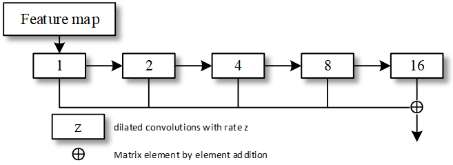 - In order to expand the receptive field of feature extraction, we used hole convolution in the feature module and different dilated rates to extract a larger receptive field in order to realize feature information fusion.