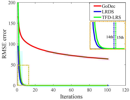 - Zhou, T.; Tao, D. GoDec: Randomized low-rank & sparse matrix decomposition in noisy case. In Proceedings of the 28th International Conference on Machine Learning (ICML), Bellevue, WA, USA, 28 June–2 July 2011; pp. 33–40. [Google Scholar]