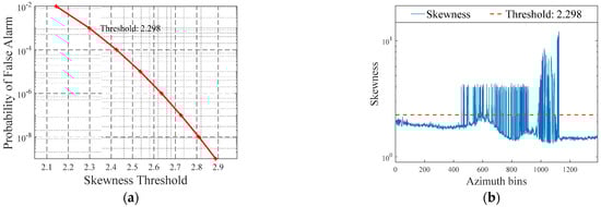 Therefore, the RFI detection is transformed into the skewness value judgement in the TF domain, which is a binary classification problem. The key issue in solving this problem is to determine an appropriate detection threshold, , which is of great significance for the missing detection and the false alarm in RFI detection. It is demonstrated as follows: