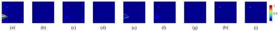 For the proposed FrFT-TRX, three parameters—the fractional order p and the spatial sizes (Wt, Wb) of the target and background tensors—have a significant influence on the detection results. For data L, p was first selected by FrFE maximization [29], where p = 0.2. The AUC values versus (Wt, Wb) are listed in Table 4, and the optimal value was 0.9493 when (Wt, Wb) were set to (9, 11). Then, (Wt, Wb) were set to (7, 9) and Figure 17 shows the AUC values versus p. The optimal AUC value was 0.9529 and the corresponding optimal p was 1.