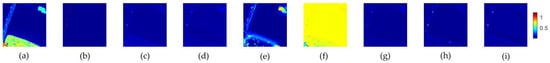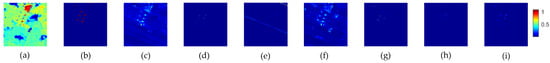Data S and two-dimensional diagrams of detection results: (a) 100th band of data S; (b) Ground-truth map; (c) GRX; (d) LRX; (e) KRX; (f) FrFE-RX; (g) FrFE-LRX; (h) PCA-TRX; and (i) FrFT-TRX.
