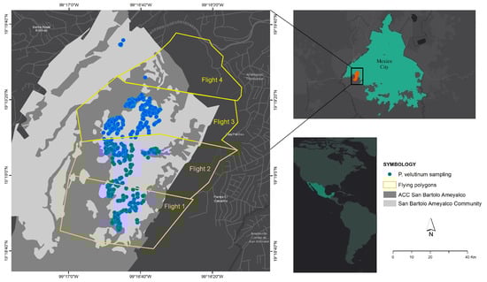 The study area is located in the conservation site, registered as Community Conservation Area of the San Bartolo Ameyalco Community, located at coordinates 19°20N and 99°16W at a height of about 2420 m.a.s.l. in Alvaro Obregón Borough, south of Mexico City. San Bartolo Ameyalco was registered with the Community Areas for Ecological Conservation program in 2017, with the aim of protecting, improving, and conserving the natural resources and environmental services that this area provides to Mexico City.