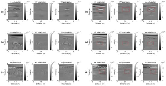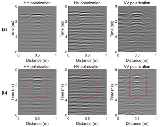 where SHH, SHV, SVH, and SVV represent the FP-GPR data obtained using the antenna array in Figure 1.