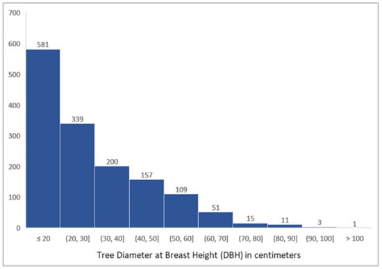 Distribution of study area trees by diameter at breast height (DBH).