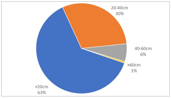 The algorithm’s tree detection performance was strongly linked to DBH and improved notably as tree diameter increased (Figure 15). While trees with DBH under 20 cm were detected at a rate of 49%, the rate was 86.5% for trees above 28 cm DBH (the minimum DBH for sawtimber). For the largest trees in the study plots, those with DBH greater than 60 cm, only 3 of 64 trees were not detected.