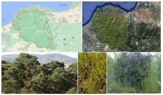 The study area was the Paphos forest in Cyprus (Figure 1), located in the western part of the Troodos mountain range. This is a coniferous forest of 600 km2 including two natural areas and it was selected since it represents an ecosystem of great importance. Additionally, according to a recent survey conducted in Cyprus 38.7% of the participants noticed much to very much and 26.92% moderate degradation on coniferous forest in Cyprus, while 44% believed that conifers are the most affected plant species by climate change [].