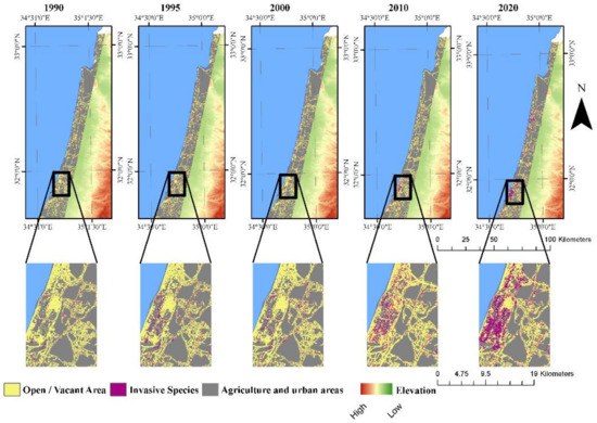 APA StyleKozhoridze, G., Dor, E. B., & Sternberg, M. (2022). Assessing the Dynamics of Plant Species Invasion in Eastern-Mediterranean Coastal Dunes Using Cellular Automata Modeling and Satellite Time-Series Analyses. Remote Sensing, 14(4), 1014. https://doi.org/10.3390/rs14041014