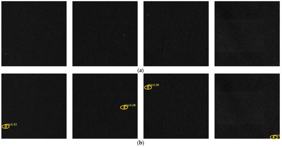 In an on-board SAR ship detection mission, quantities of pure backgrounds images will bring additional detection burden to the detector (pure background images mean that there are no ships in images). []. Based on the common sense that the ocean area is much larger than the land area, most of the pure background images are pure background ocean images. On the one hand, false alarms may occur even encountering pure background images, as seen in Figure 7; on the other hand, pure background images may only increase the detection time of the detector without any benefit.
