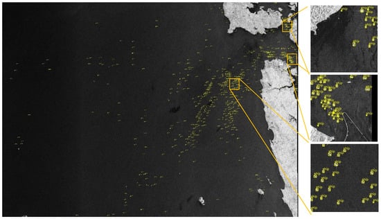 In recent years, an increasing number of high-quality microwave remote sensing images have been provided by synthetic aperture radar (SAR) satellites. Due to the all-day and all-weather ability of SAR, SAR remote sensing images have been widely applied in the field of ship detection. Currently, increasing number of scholars are paying attention to ship detection in SAR images due to its potential application in environmental monitoring, shipwreck rescue, oil leakage detection, marine shipping control [,,,], etc. Thus, it is of great significance to obtain the real-time and accurate ship detection results.