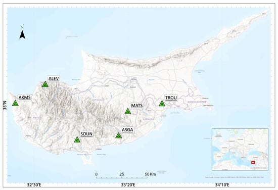 All the candidate sites should be located in government-controlled areas (parcels). Since CyCLOPS is a strategic infrastructure, and the objective is to provide nationwide coverage, CUT cooperated with the Department of Lands and Surveys (DLS) to determine candidate state parcels within the Republic of Cyprus. The selection was refined and finalized after consulting with the Geological Survey Department (GSD), and taking into account crucial information on Cyprus’s geological, geodynamic, and geotechnical regime. The acquisition of official site permits, including the required works for equipment safety (i.e., fencing), was mandatory for installing the permanent segment. The choice of state land was obvious, since the infrastructure has a strategic nature (nationwide coverage), it has to be permanent, and has to provide continuous monitoring. The choice of state land minimises the risk of having to uninstall or move the infrastructure due to ownership changes, through long-term lease of the government parcels.