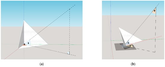 A triangular trihedral CR can be considered as an object whose RCS is determined by its open face. The maximum RCS direction is determined as normal to the CR’s open face. Concordantly, the orientation angle is expressed as follows: