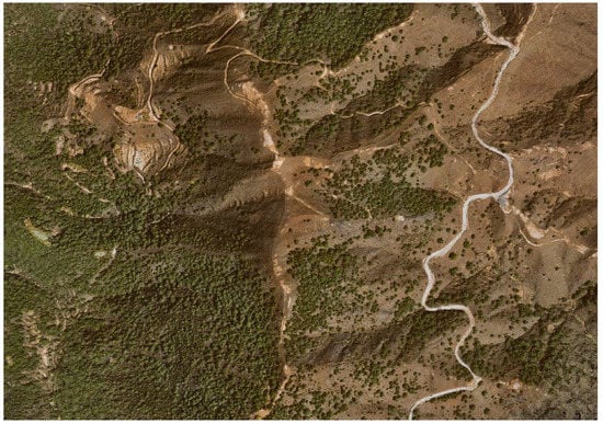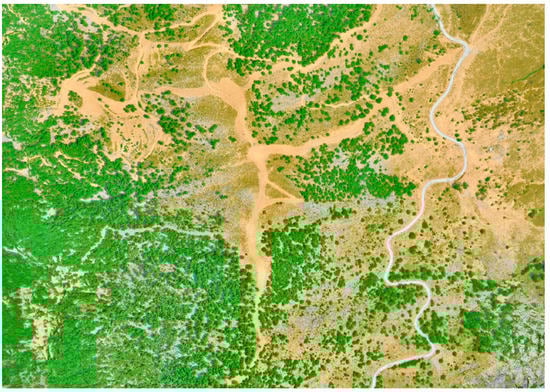 The orthomosaic generated from the images of UAV missions gives a detailed view of the land cover of the AOI. However, to assign the necessary values to the suitability analysis, the raster image must be defined in a land cover classification system to all pixels; ergo, as illustrated in Figure 9, five classes were generated using the supervised classification method. The latter approach relies on manually determined training samples, where the classifier assigns the image pixels to a given class by comparing the classified image with the samples [].