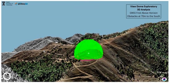 Each site was surveyed using a tactical-grade Unmanned Aerial Vehicle (UAV), the SenseFly eBee X RTK, which is able to perform direct in-flight georeferencing using two-frequency Real-Time Kinematic (RTK) positioning. For every site, the following products were generated, using PIX4D Mapping Software version 4.6.4: (a) a 2D orthomosaic, (b) a high-resolution Digital Terrain Model (DTM), (c) a high-resolution Digital Surface Model (DSM), (d) Contour Maps, (e) a Photorealistic 3D model. Digital elevation models are commonly used as a data source for spatial analysis because they represent the constantly changing topographic surface []. These products aim to obtain slope, aspect, and land cover data and enable LOS visibility and exploratory analysis. The main purpose of the UAV mapping was the creation and validation of models to enable the determination of the final locations of GNSS CORS and CRs. The derivation of the required products was based on the following steps: