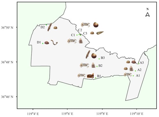 In this paper, a mudflat quantitative sampler with the size of 0.25 m × 0.25 m × 0.3 m is utilized to collect intertidal biological samples at the sites according to the sites and number of quadrats listed in