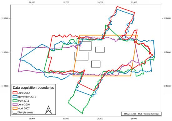 The data used in this study result from five archaeological data acquisition campaigns undertaken in 2007, 2010, 2011, and 2012 (Figure 3). In terms of seasons, flights were conducted in March/April, May, June and November. The parameters of each flight are listed in Table 1.