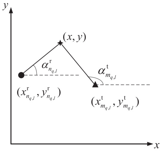 Different from the assumption of effective detection by all T-R channels in previous literature [13,22,25,26,27,28], available TDMs of three or more T-R channels can ensure the uniqueness and reliability of the TOA localization result [12,31]. Therefore, is necessary for effective TOA localization instead of . depends on the localization scheme and the system requirements. In this paper, we investigate the two-dimensional TOA localization.