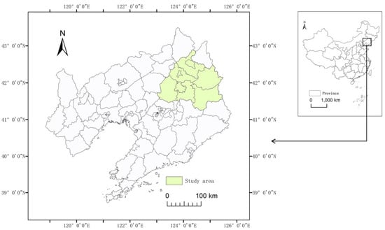 The spatial range of the remote sensing images used in this study is 41.6–42.2° N, 123.5–124.8° E (Figure 1), covering Shenyang City District, Tieling City District, Fushun City District, Kaiyuan City, Tieling County, Fushun County, Xinbin Manchu Autonomous County, Qingyuan Manchu Autonomous County, Liaoning Province, China. The research area is rich in vegetation resources and is dominated by mountain forests, such as those of the Daxi, Tiebei, and Nantianmen Mountains. The genus Pinus has a wide range of distribution and is present in large numbers. Among the species in the area, Pinus densiflora Sieb. et Zucc., Pinus tabuliformis Carr., Pinus thunbergii Parl., and other pine tree species are hosts to pine wood nematodes. The study area has a northern temperate seasonal continental climate with cold, dry winters and warm, rainy summers, and its altitude ranges from 5.3 m to 1346.7 m. The average annual temperature is approximately 6–10 °C. The maximum temperature in August can reach 38 °C, and the minimum temperature in January can be below −35 °C. The average daily minimum temperature is above 0 °C beginning in April, and the average daily minimum temperature is below 0 °C beginning in November. An average of 600 to 850 mm of rainfall occurs yearly, and there are approximately 2500 h of sunshine annually, with longer sunshine hours in May and June and shorter sunshine hours in November and December. The annual average wind speed is 4.5 m per second. Relevant studies have shown that pine wood nematodes have a strong ability to adapt to temperatures above 0 °C [2]. The range of latitude within the study area is also suitable for pine wood nematodes, and the study area provides suitable breeding conditions for pine wood nematodes [2]. The studied area is a key area for the detection, prevention, and control of pine wood nematode disease. In recent years, the incidence of pine wood nematode disease in Fushun, Dandong, and Liaoning Province has been expanding, the degree of damage caused by these pests has been increasing, and massive economic losses have occurred [19].