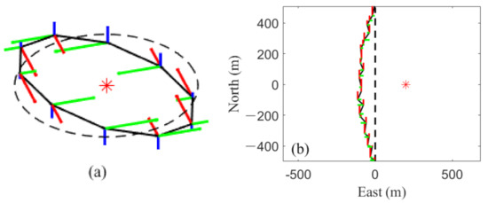 An error from inexact geometries is a kind of systematic error or coherent noise, which cannot be easily suppressed by stacking or other statistical methods. In many cases, such errors are considered negligible. However, the demand for high-resolution imaging and quantitative interpretations continues to increase nowadays. Not taking into account the effect of inexact geometry in the inversion may undermine confidence in the interpretation or even produce misleading results. Previous researchers have noticed this problem and proposed solutions. The authors of [8] developed a novel “agree-to-disagree” strategy to identify and correct misrecorded flight height in ATEM. In [9], the authors proposed to record the orientation of the ATEM bird and decompose the tilted loop as a linear combination of three orthogonal magnetic dipoles. The authors of [10] modeled the actual geometry of a large ground loop using a series of electrical dipoles. Generally, it is required to record the actual size, position, and orientation of the transmitter and receiver, and model them by decomposing them into a number of elementary dipoles.