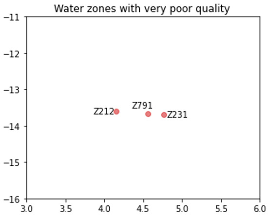 Water zones with very poor quality.