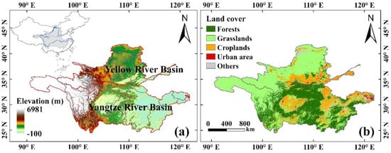 - Fang, L.; Wang, L.; Chen, W.; Sun, J.; Cao, Q.; Wang, S.; Wang, L. Identifying the impacts of natural and human factors on ecosystem service in the Yangtze and Yellow River Basins. J. Clean. Prod. 2021, 314, 127995. [Google Scholar] [CrossRef]
