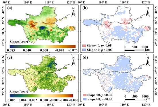 - Zhang, W.; Wang, L.; Xiang, F.; Qin, W.; Jiang, W. Vegetation dynamics and the relations with climate change at multiple time scales in the Yangtze River and Yellow River Basin, China. Ecol. Indic. 2020, 110, 105892. [Google Scholar] [CrossRef]
