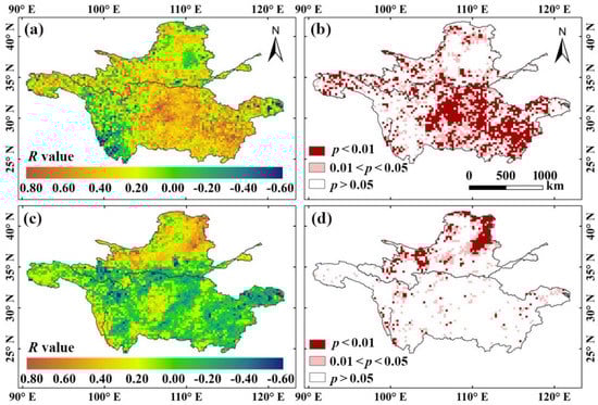 3.3.1. Correlation Analysis between Climatic Factors and Vegetation Changes