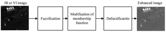 The IR or VI images are fed as input I. Then, the image is transformed from spatial domain to fuzzy domain by Equation (2).