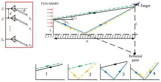 Schematic diagram of reflection model with VHF-FDA-MIMO radar.