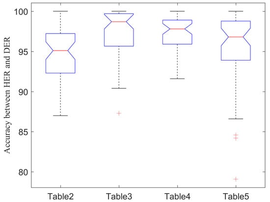 Table 2, Table 3, Table 4 and Table 5 shows the accuracy between DER and HER in the farm management of FMT and NGT. The name rules in the table are based on different test plots. For instance, 1A denotes the earliest and 7A the latest sowing plot with farm management. Likewise, 1D is the earliest and 7D is the latest sowing plot with nature growing. The remaining names in table from 1A (D) to 7A (D) are consistent one-to-one matches between different sowing plots.