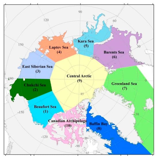 Division of the study areas in the Arctic north of 65°N.