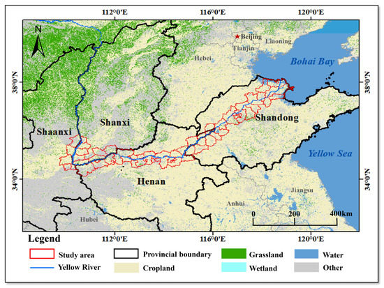 In this study, counties/cities/districts along the MLYR (34°06′51.47″N~38°10′36.76″N, 109°42′14.87″E~119°18′43.56″E) were selected as the study area (Figure 1), including the riverine locust area along the Yellow River and coastal locust area around Bohai Bay. The riverine locust areas were formed by the water level and river channel changes along the MLYR. These processes created a large area of wasteland or intercropping wasteland with extensive farming and reeds (Phragmites australis), sedges (Cyperus rotundus L.), barnyard grass (Echinochloa crusgalli), and other plants locusts like to eat, resulting in perennial habitats suitable for locust breeding. The coastal locust area is generally located 10−20 km away from the sea. Areas with less salt are infested with plants that locusts eat, such as reeds and elephant grass (Imperata cylindrical). The study area has a temperate monsoon climate and four distinct seasons. The primary terrain is the alluvial plain of the Yellow River.