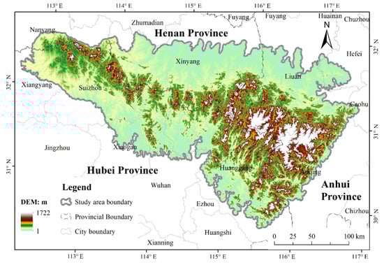 The location of the study area is at the junction of Henan, Hubei, and Anhui Provinces.