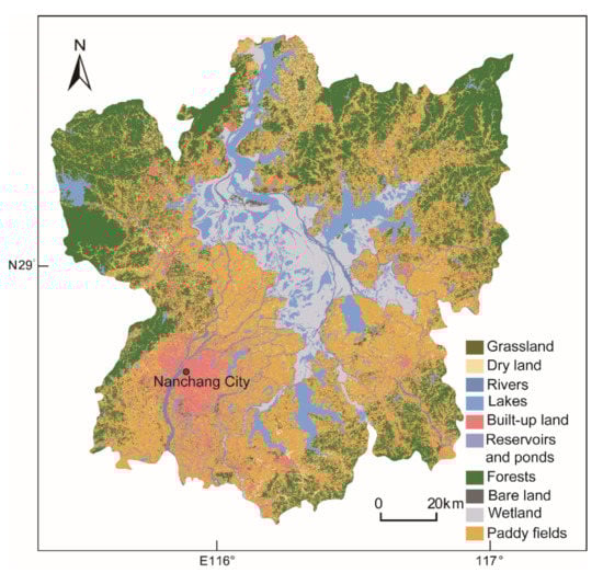 - Luo, Z.; Shi, X.; Han, L.; Nie, L. A study on carbon emission effects of changes in land use in poyang lake region. Acta Agric. Univ. Jiangxiensis 2013, 35, 1074–1081. [Google Scholar] [CrossRef]