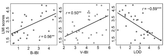 | V-IBI | −0.21 | −0.56 | 0.40 | 0.27 | −0.48 | −0.54 |