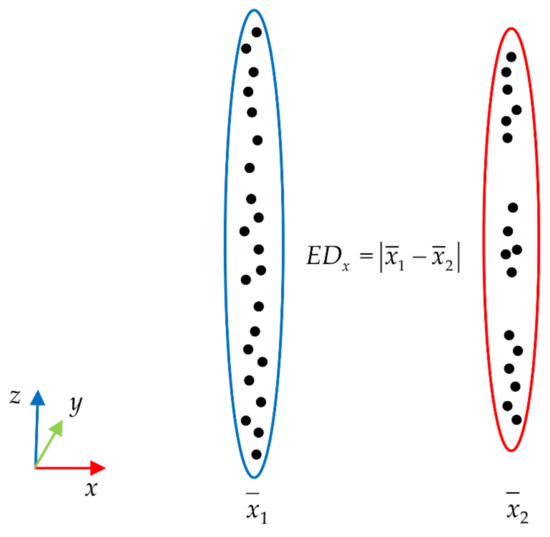 The grid repair principle can be expressed as in Figure 12. As shown in the figure, to “copy–paste” the point cloud in the left grid into the right grid, we need only to change the X-axis coordinates of all points in the left grid, and the distance moved is the distance between the centers of the two grids, which can be obtained from the grid size. In summary, to make the point cloud information correct after the “paste”, point cloud rotation is essential.